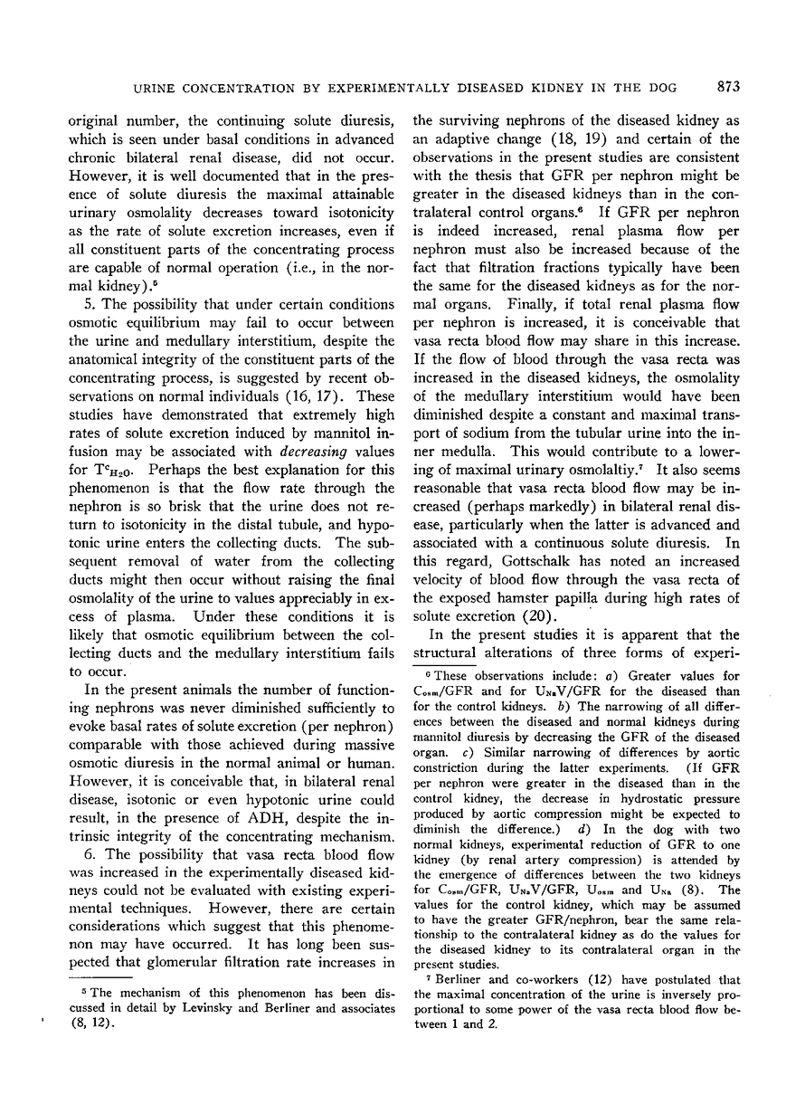 THE INFLUENCE OF GLOMERULAR FILTRATION RATE, SOLUTE EXCRETION AND HYDRATION ON THE CONCENTRATING MECHANISM OF THE EXPERIMENTALLY DISEASED KIDNEY IN THE DOG