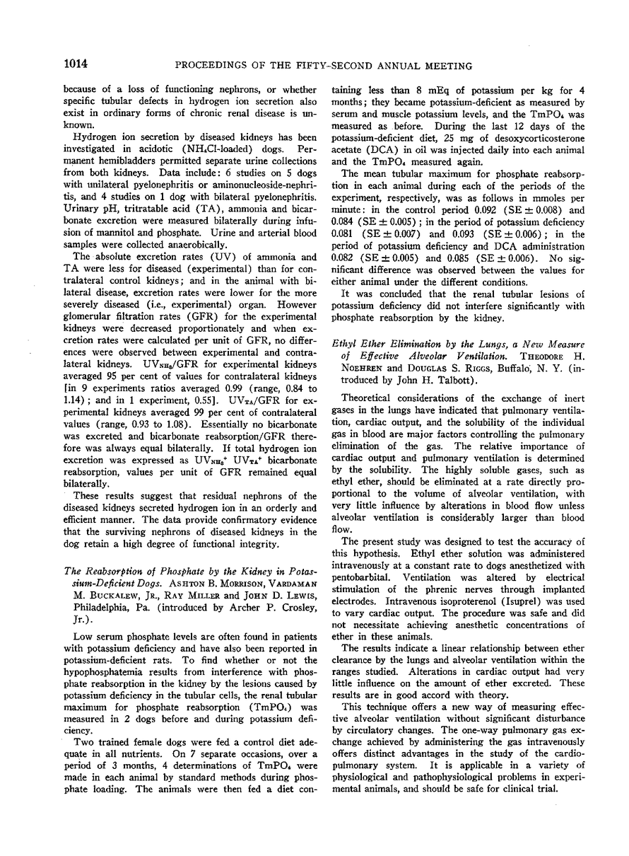 PROCEEDINGS OF THE FIFTY-SECOND ANNUAL MEETING OF THE AMERICAN SOCIETY FOR CLINICAL INVESTIGATION HELD IN ATLANTIC CITY, N. J., MAY 2, 1960
