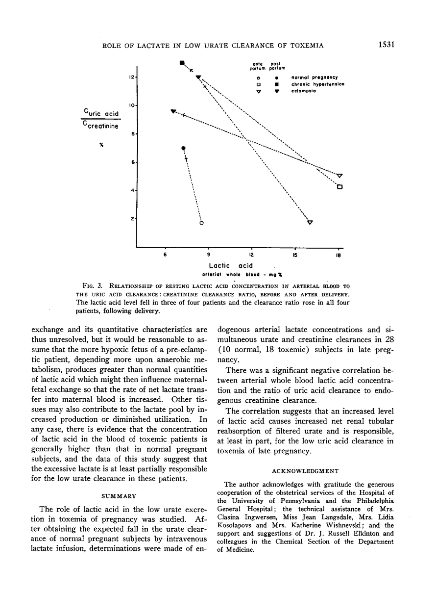 THE ROLE OF LACTIC ACID IN THE REDUCED EXCRETION OF URIC ACID IN TOXEMIA OF PREGNANCY