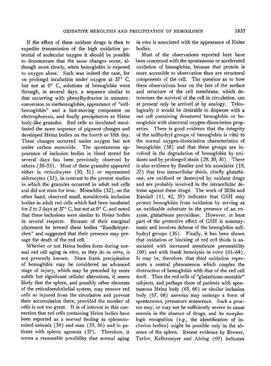OXIDATIVE HEMOLYSIS AND PRECIPITATION OF HEMOGLOBIN. I. HEINZ BODY ANEMIAS AS AN ACCELERATION OF RED CELL AGING