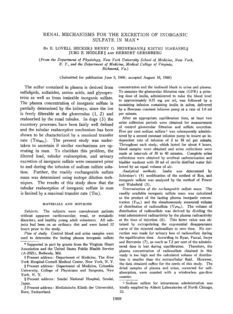 RENAL MECHANISMS FOR THE EXCRETION OF INORGANIC SULFATE IN MAN