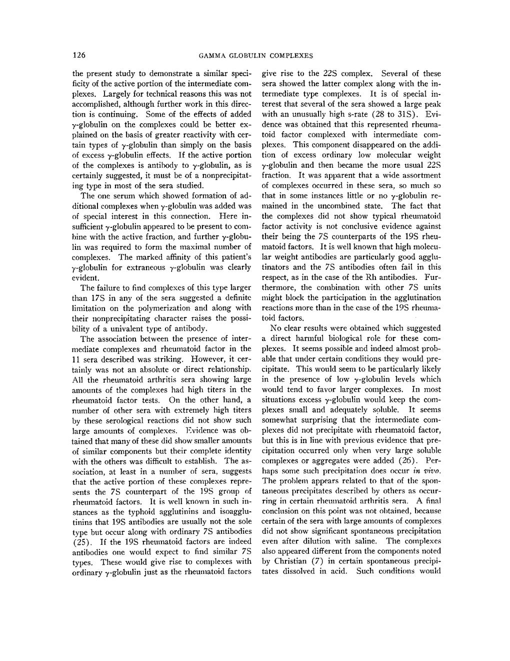 GAMMA GLOBULIN COMPLEXES IN RHEUMATOID ARTHRITIS AND CERTAIN OTHER CONDITIONS