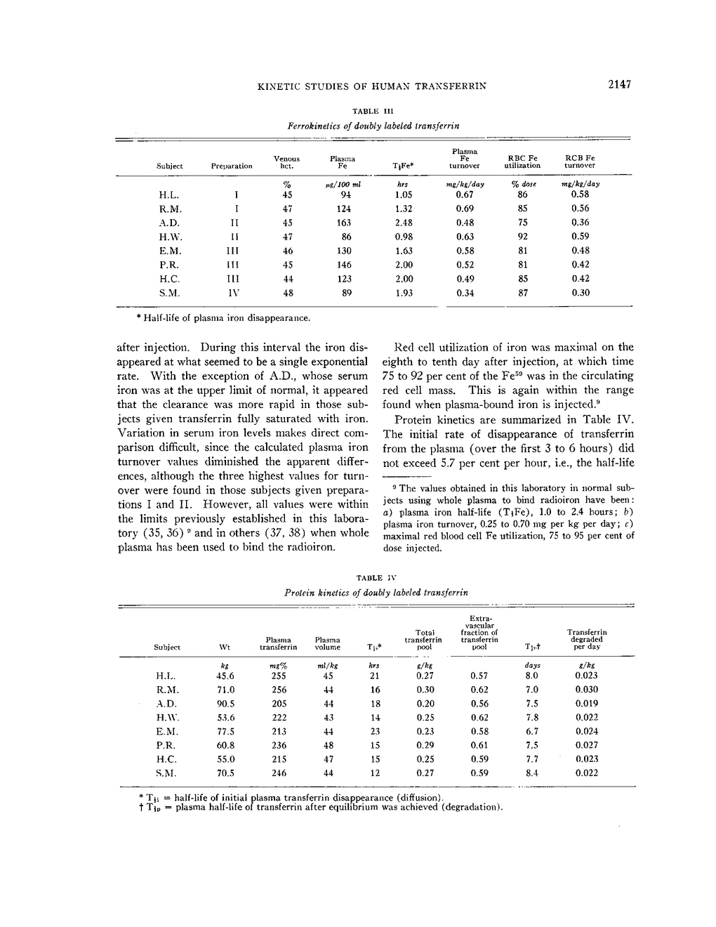 IRON AND PROTEIN KINETICS STUDIED BY MEANS OF DOUBLY LABELED HUMAN CRYSTALLINE TRANSFERRIN