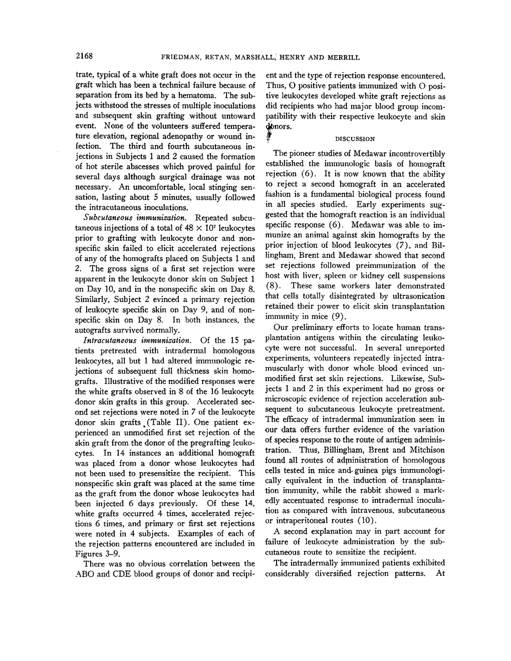 ACCELERATED SKIN GRAFT REJECTION IN HUMANS PRE-IMMUNIZED WITH HOMOLOGOUS PERIPHERAL LEUKOCYTES