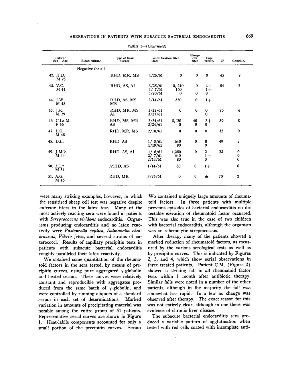 RHEUMATOID FACTOR, COMPLEMENT, AND CONGLUTININ ABERRATIONS IN PATIENTS WITH SUBACUTE BACTERIAL ENDOCARDITIS