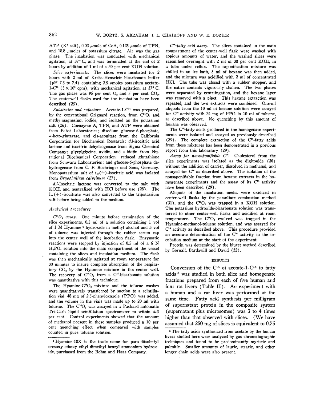 W. Bortz, S. Abraham, I. L. Chaikoff, W. E. Dozier