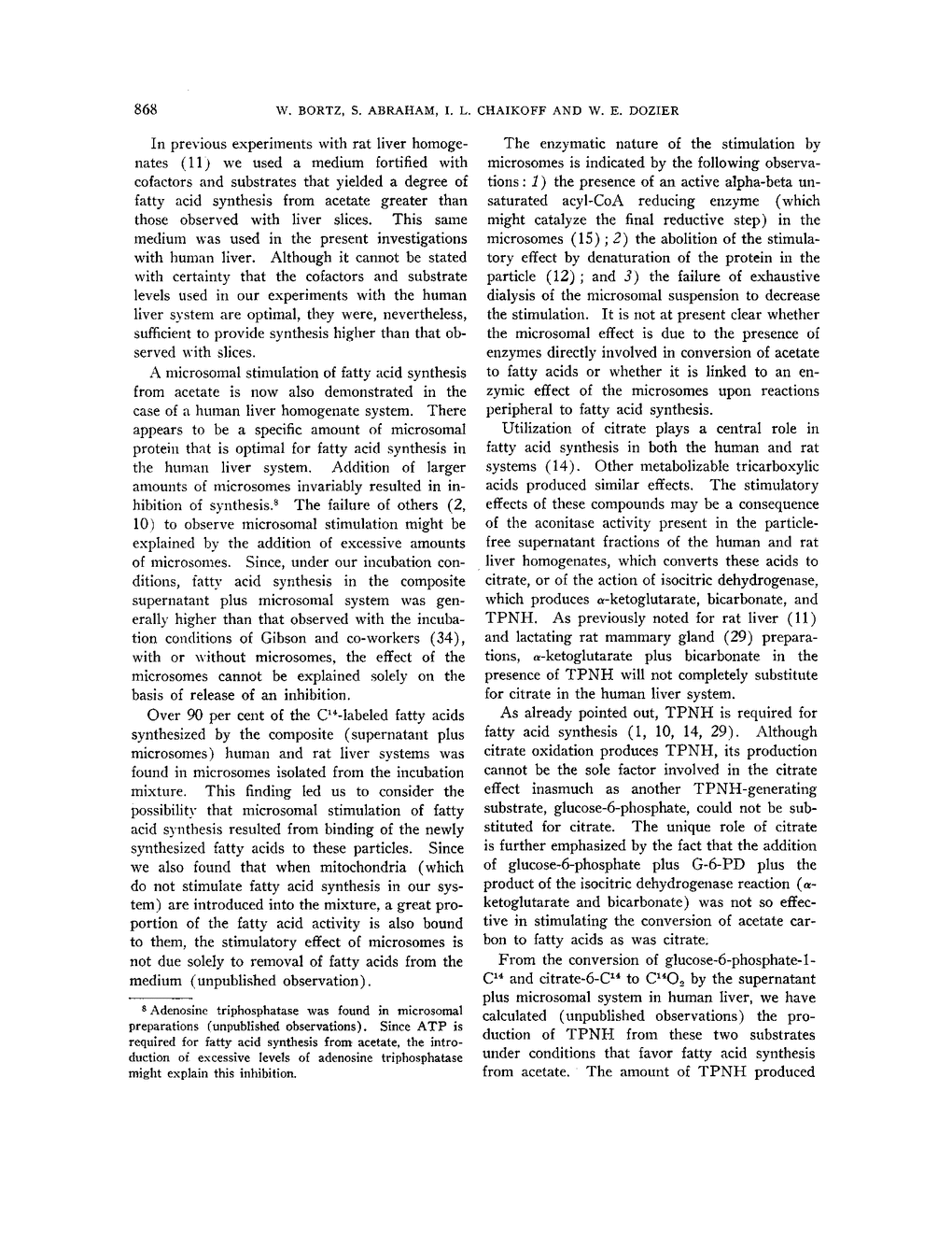 W. Bortz, S. Abraham, I. L. Chaikoff, W. E. Dozier