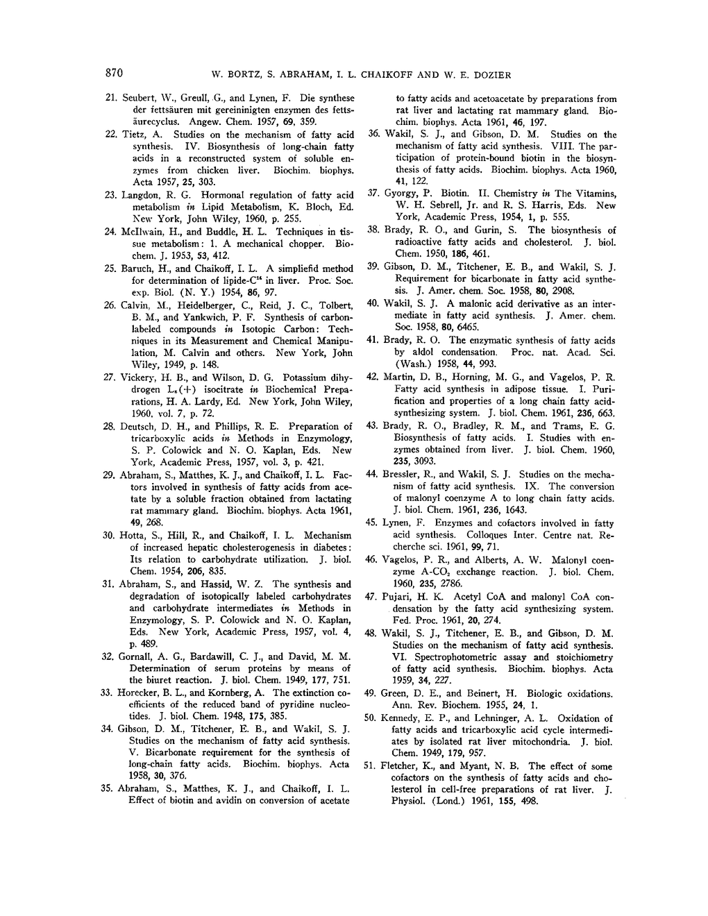 W. Bortz, S. Abraham, I. L. Chaikoff, W. E. Dozier