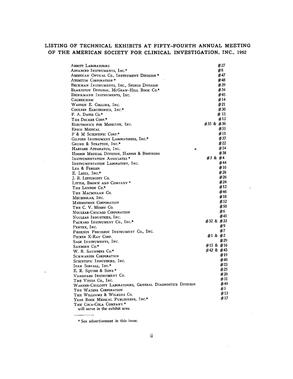 PROGRAM OF THE FIFTY-FOURTH ANNUAL MEETING OF THE AMERICAN SOCIETY FOR CLINICAL INVESTIGATION, INC., TO BE HELD IN ATLANTIC CITY, NEW JERSEY, APRIL 30, 1962