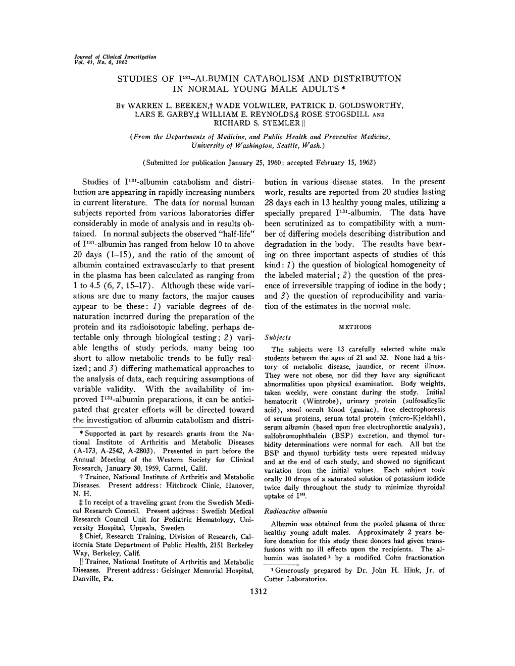Warren L. Beeken, Wade Volwiler, Patrick D. Goldsworthy, Lars E. Garby, William E. Reynolds, Rose Stogsdill, Richard S. Stemler