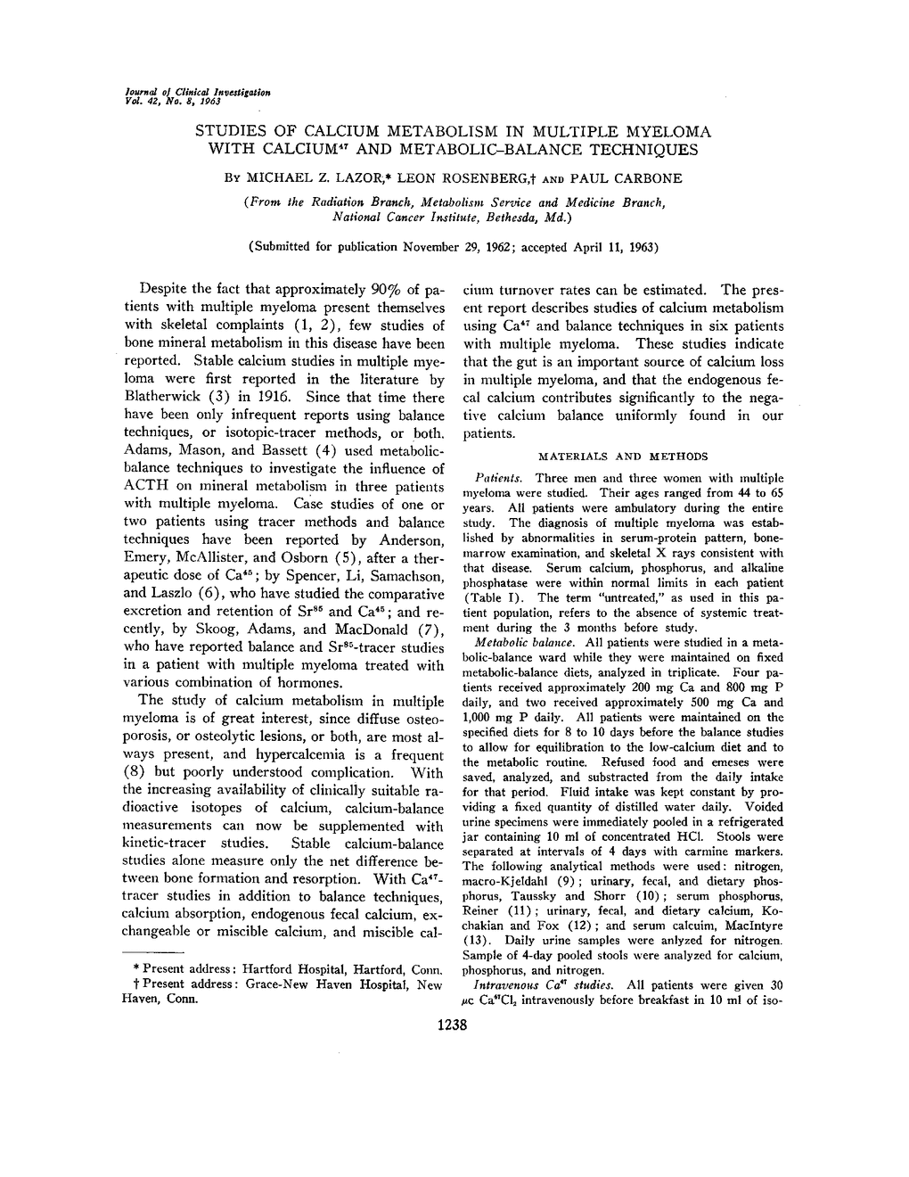 STUDIES OF CALCIUM METABOLISM IN MULTIPLE MYELOMA WITH CALCIUM