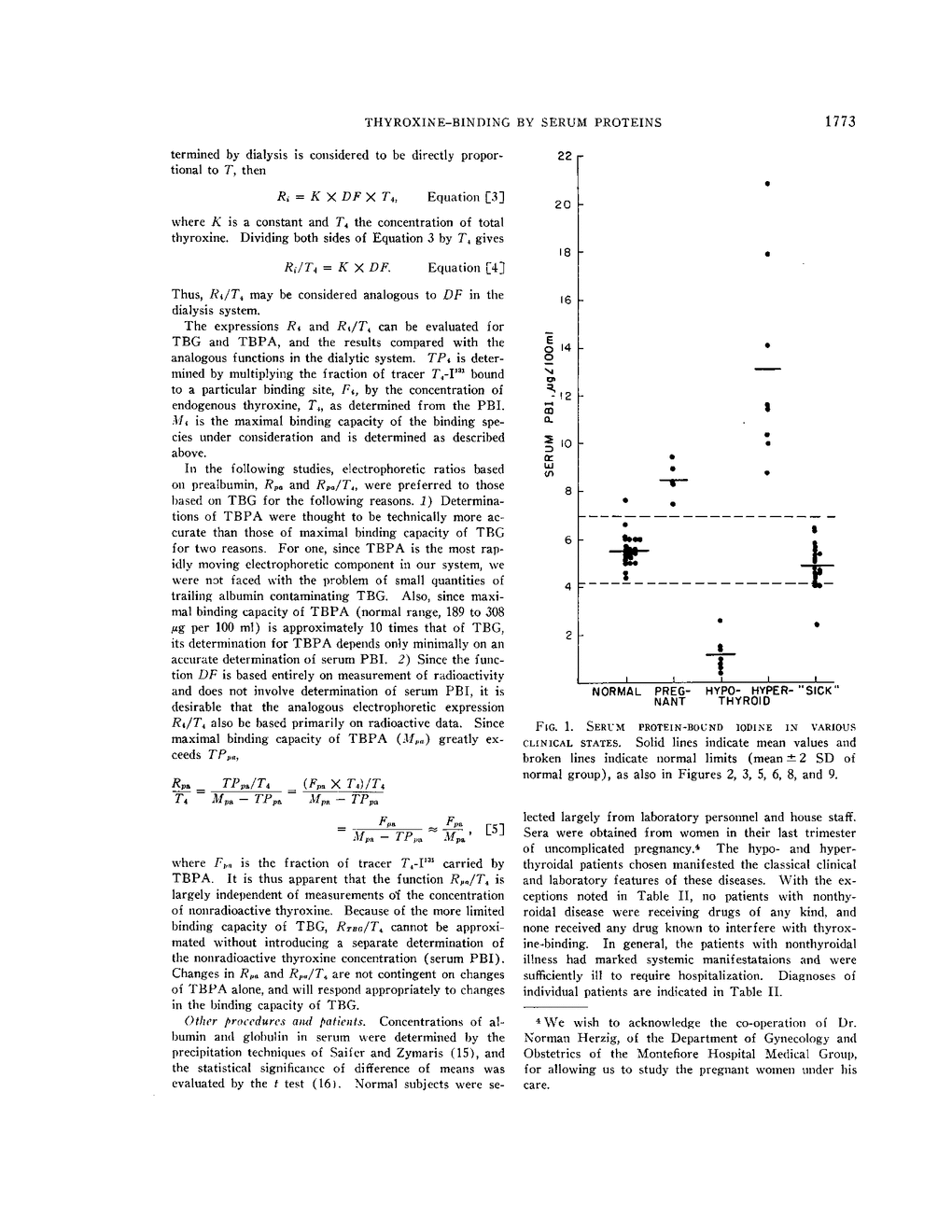 BINDING OF THYROXINE BY SERUM PROTEINS EVALUATED BY EQUILIBRIUM DIALYSIS AND ELECTROPHORETIC TECHNIQUES. ALTERATIONS IN NON-THYROIDAL ILLNESS