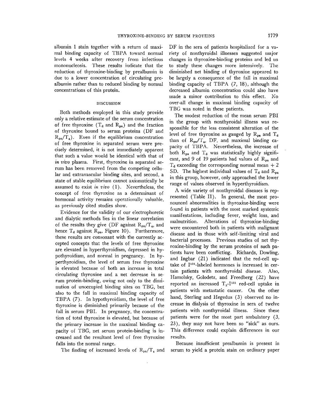 BINDING OF THYROXINE BY SERUM PROTEINS EVALUATED BY EQUILIBRIUM DIALYSIS AND ELECTROPHORETIC TECHNIQUES. ALTERATIONS IN NON-THYROIDAL ILLNESS