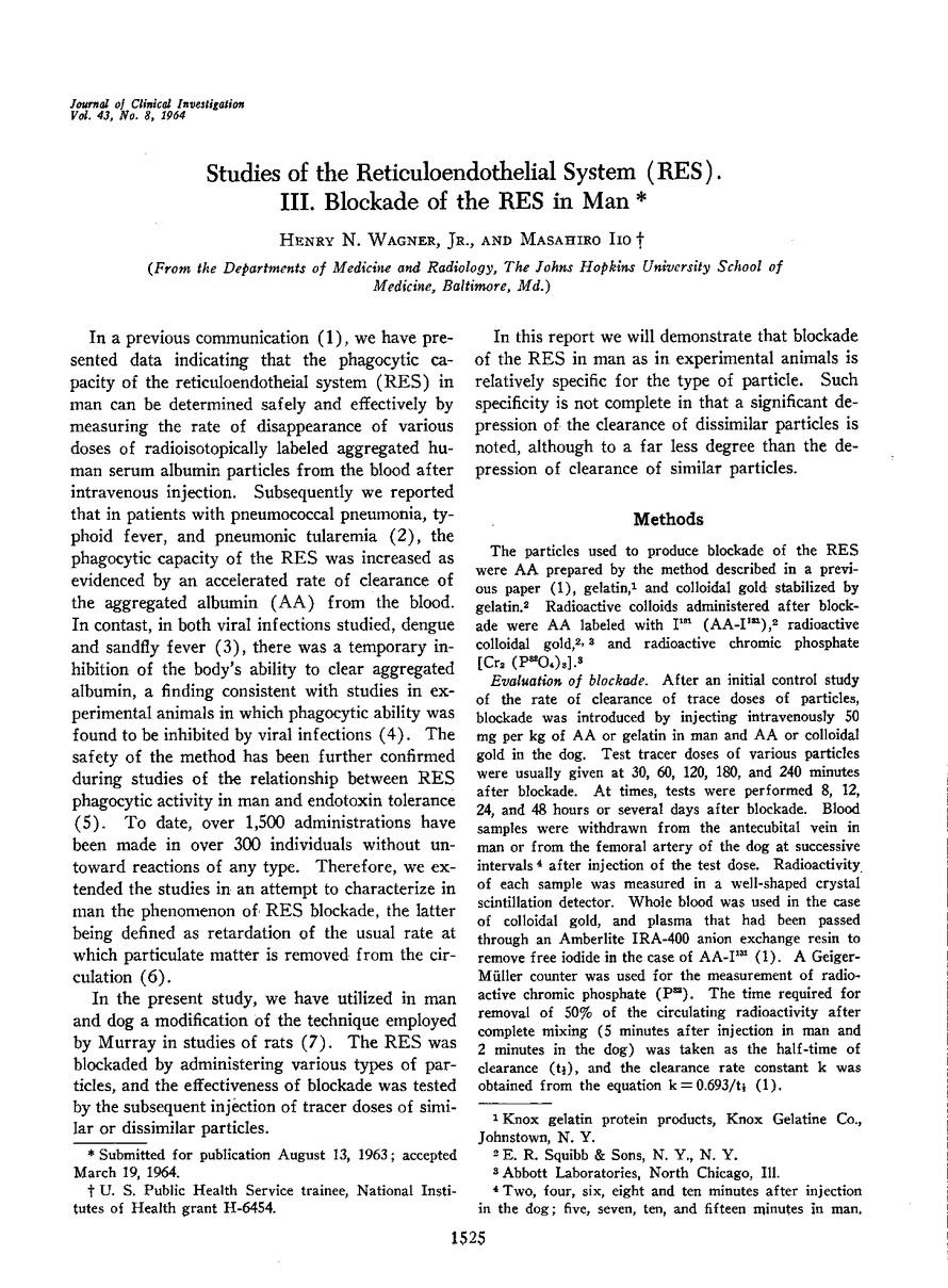 Studies of the Reticuloendothelial System (RES). III. Blockade of the RES in Man