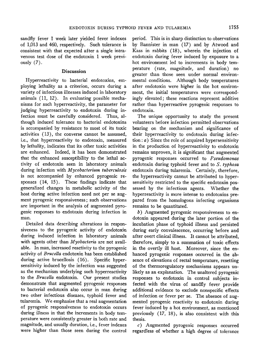 The Role of Endotoxin during Typhoid Fever and Tularemia in Man. III. Hyperreactivity to Endotoxin during Infection