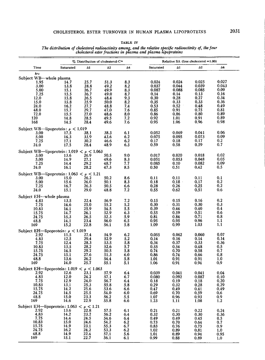Turnover of Individual Cholesterol Esters in Human Plasma Lipoproteins