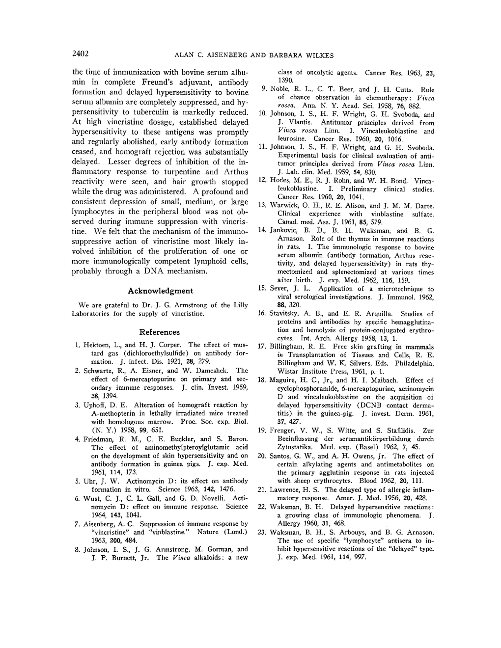 Studies on the Suppression of Immune Responses by the Periwinkle Alkaloids Vincristine and Vinblastine