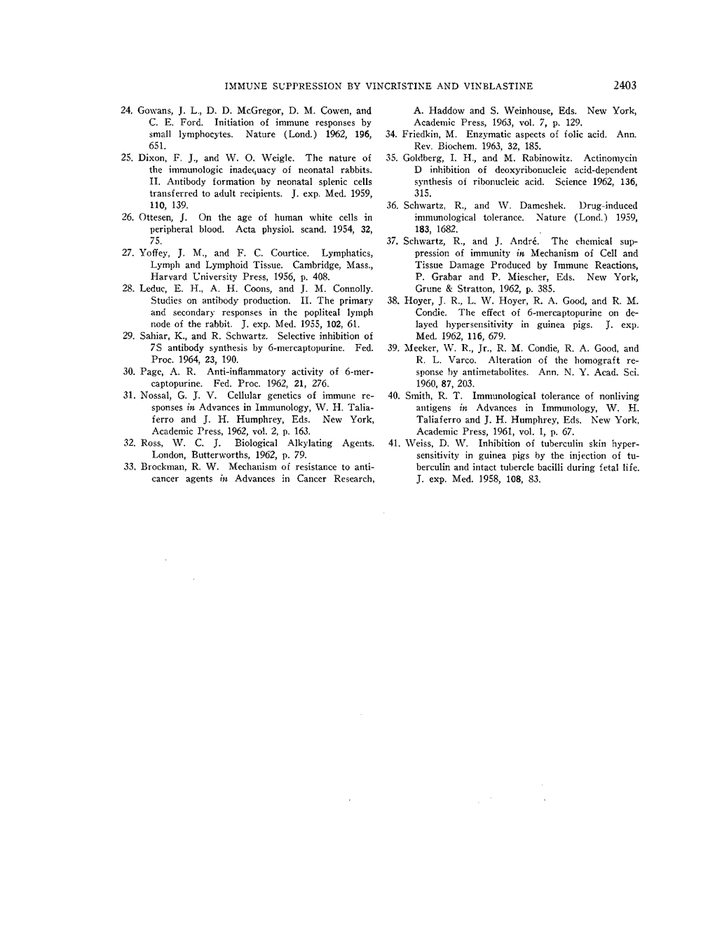 Studies on the Suppression of Immune Responses by the Periwinkle Alkaloids Vincristine and Vinblastine