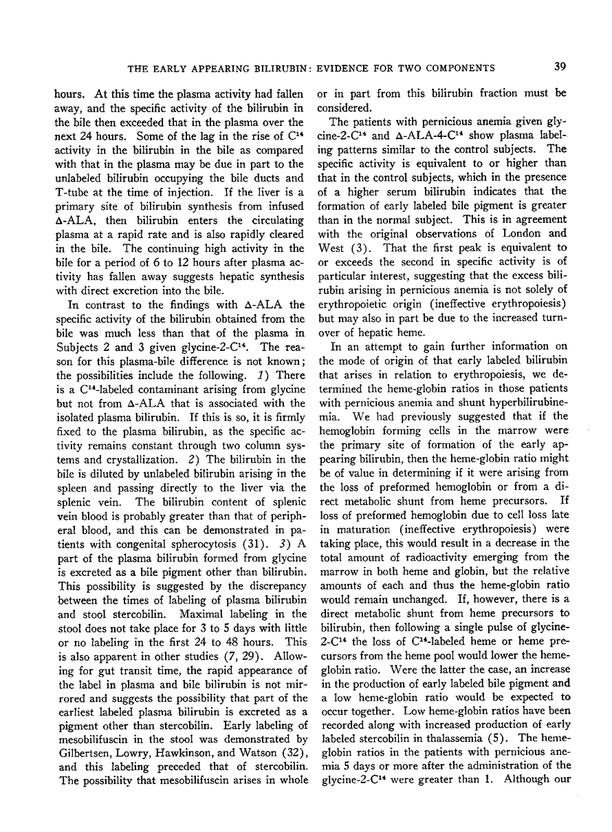 The Early Appearing Bilirubin: Evidence for Two Components