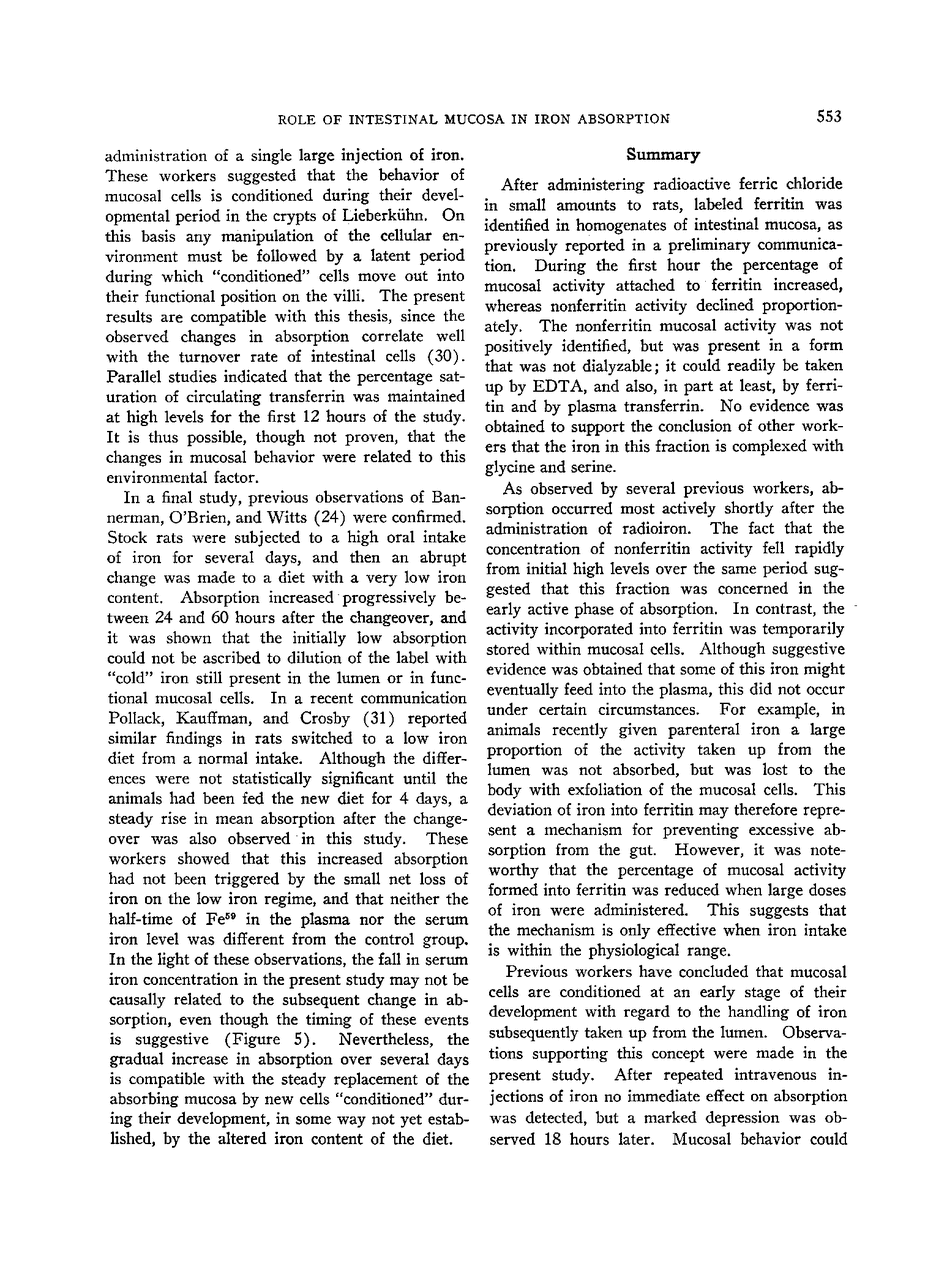 The Role of the Intestinal Mucosa in Iron Absorption