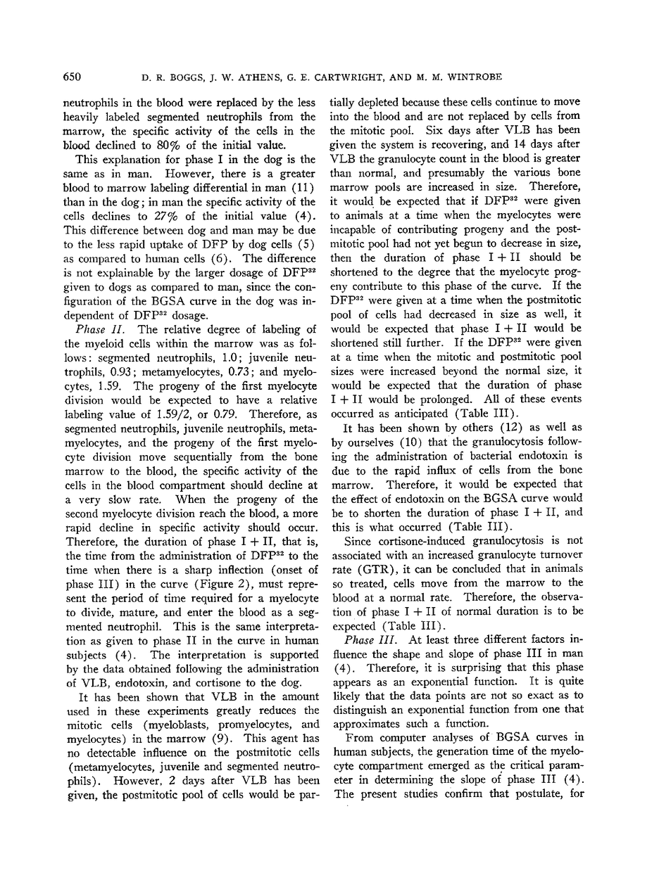 D. R. Boggs, J. W. Athens, G. E. Cartwright, M. M. Wintrobe