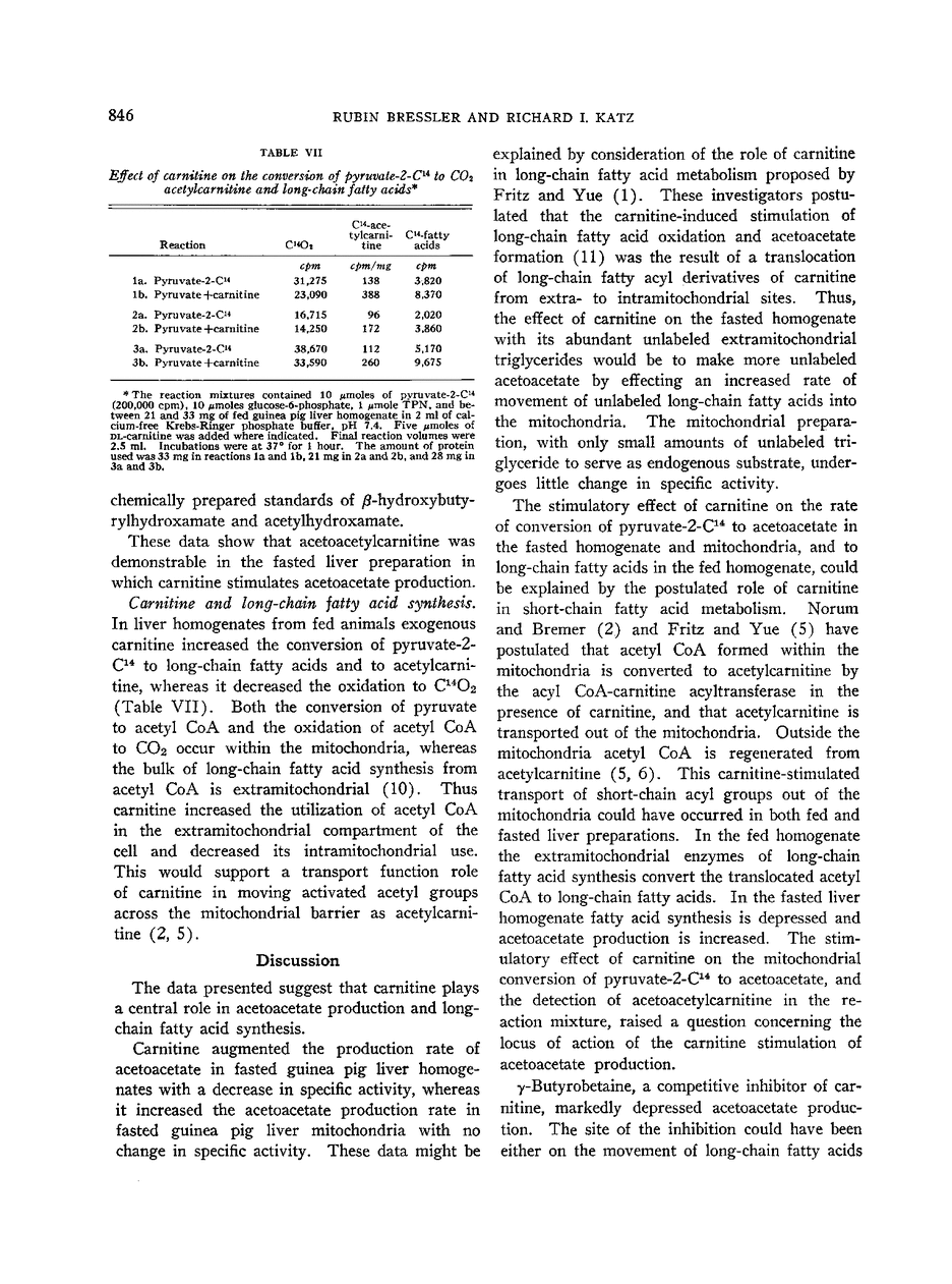 The Role of Carnitine in Acetoacetate Production and Fatty Acid Synthesis