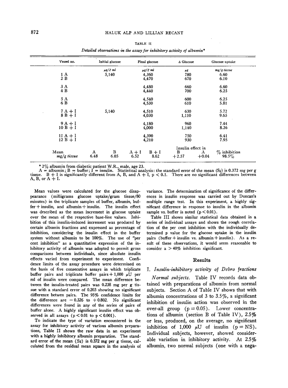 Studies of the Insulin-inhibitory Effect of Human Albumin Fractions