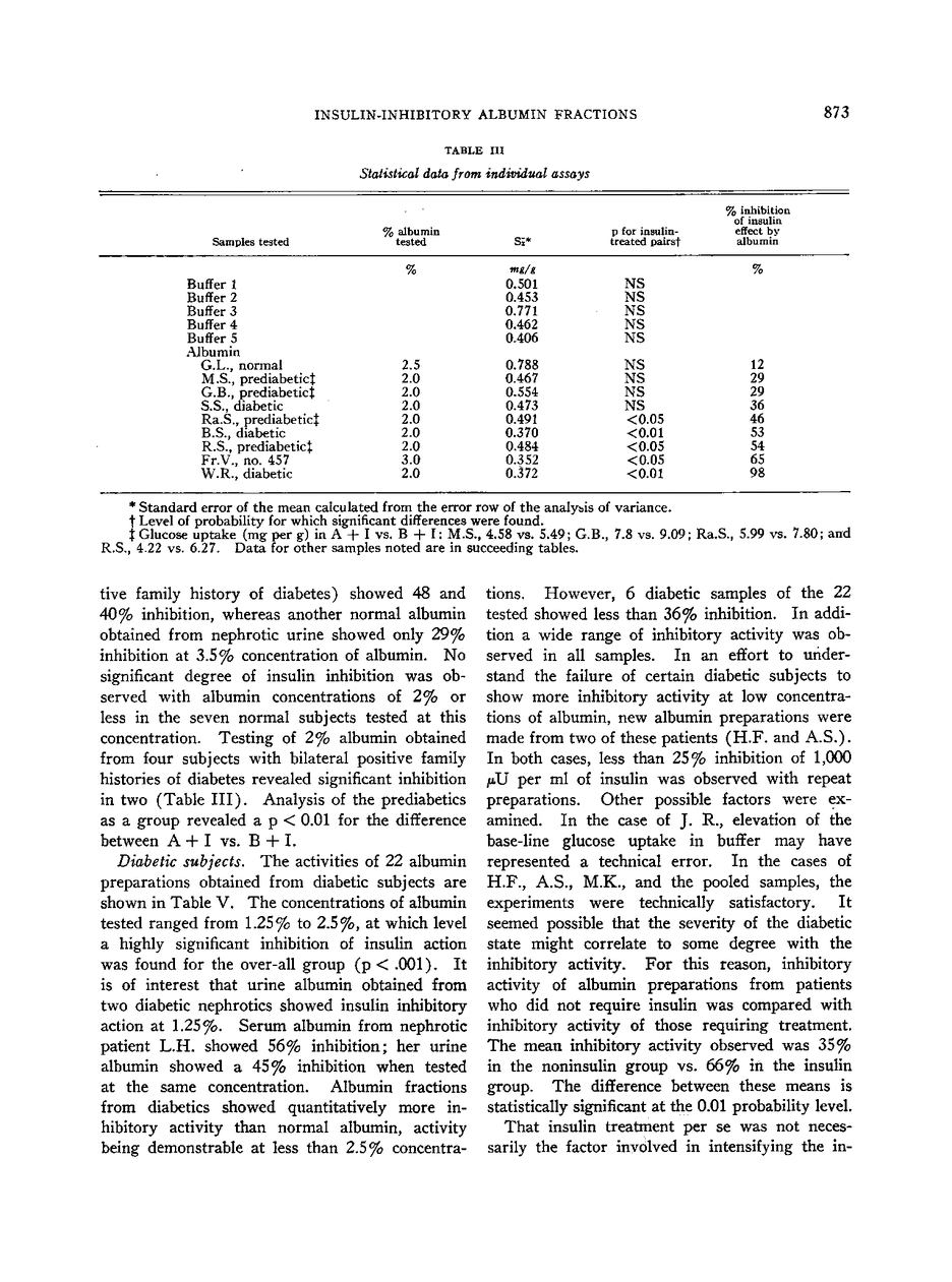Studies of the Insulin-inhibitory Effect of Human Albumin Fractions