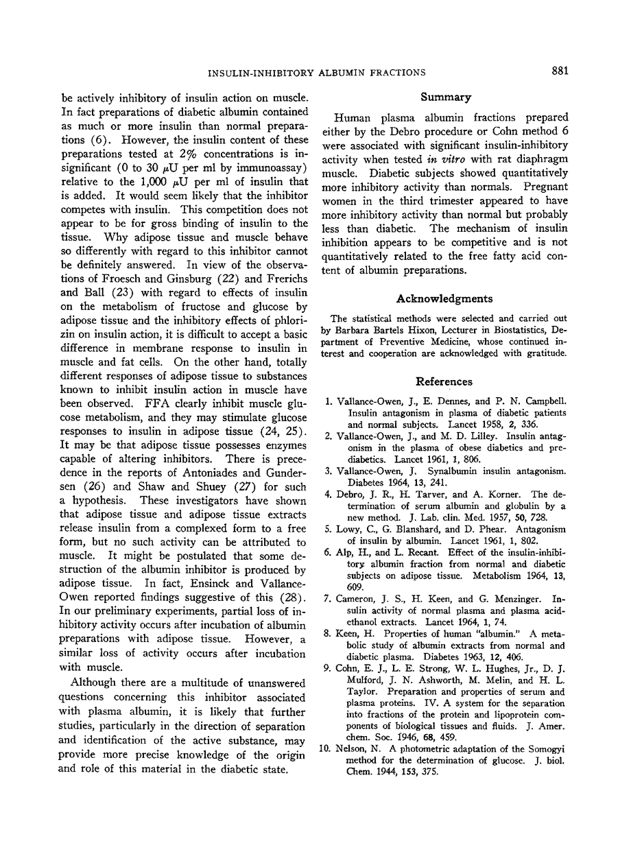 Studies of the Insulin-inhibitory Effect of Human Albumin Fractions