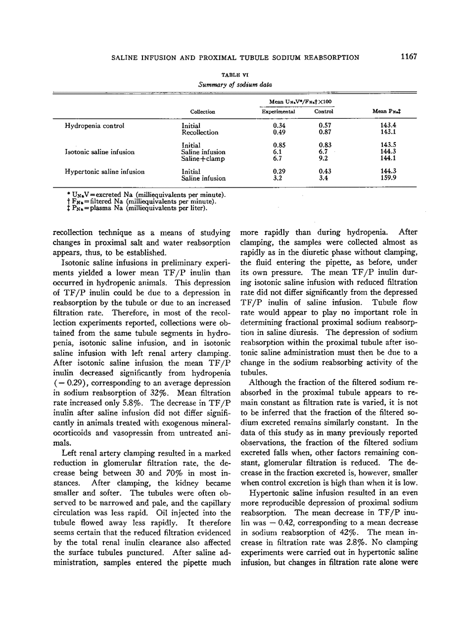 The Effect of Saline Infusion on Sodium Reabsorption by the Proximal Tubule of the Dog