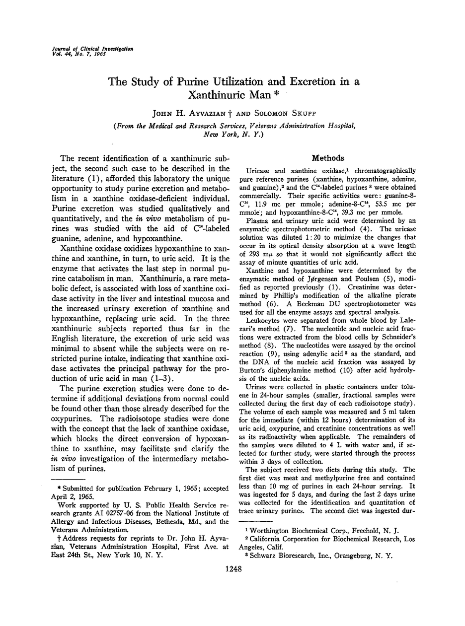 The Study of Purine Utilization and Excretion in a Xanthinuric Man
