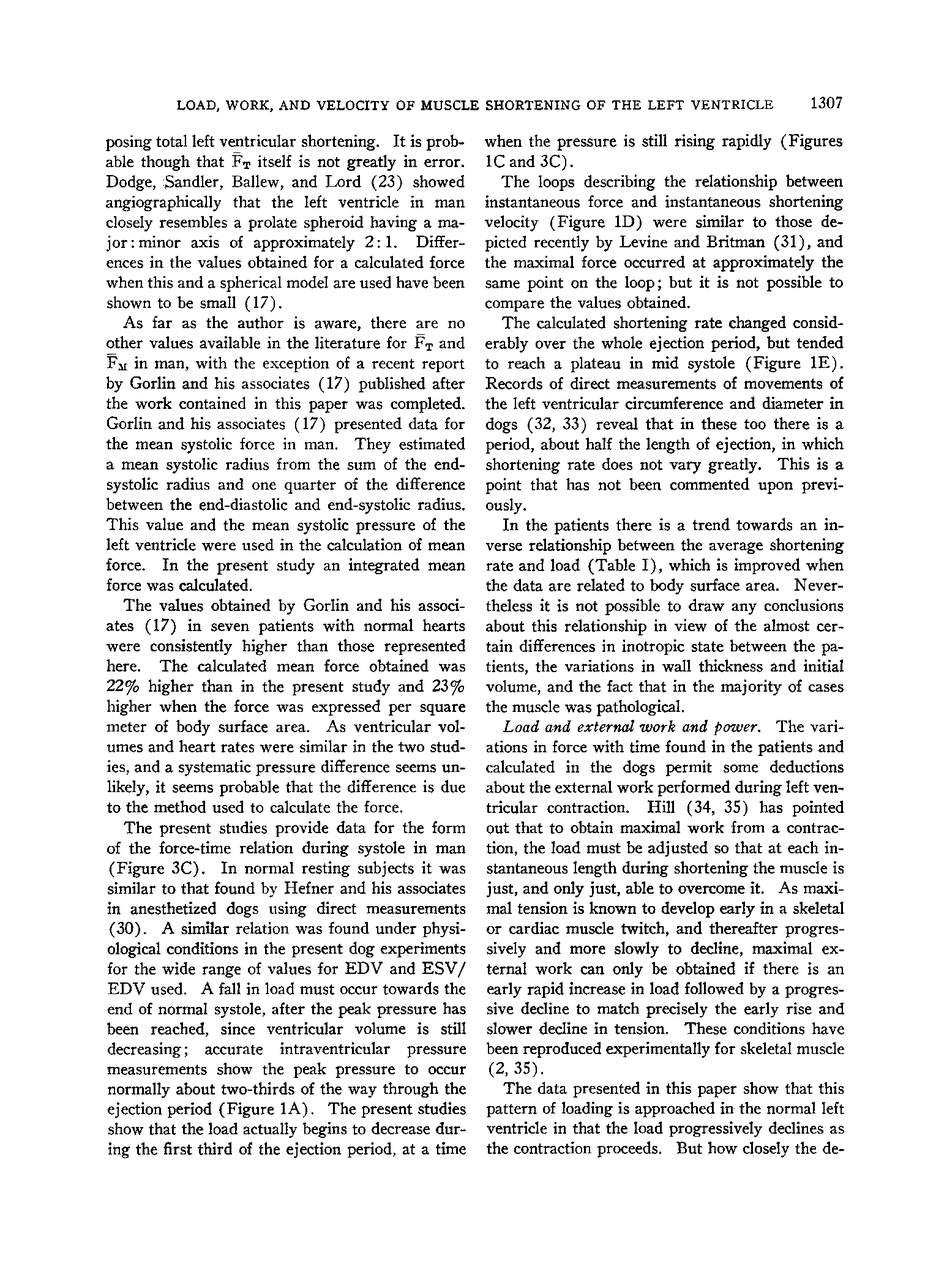Load, Work, and Velocity of Muscle Shortening of the Left Ventricle in Normal and Abnormal Human Hearts