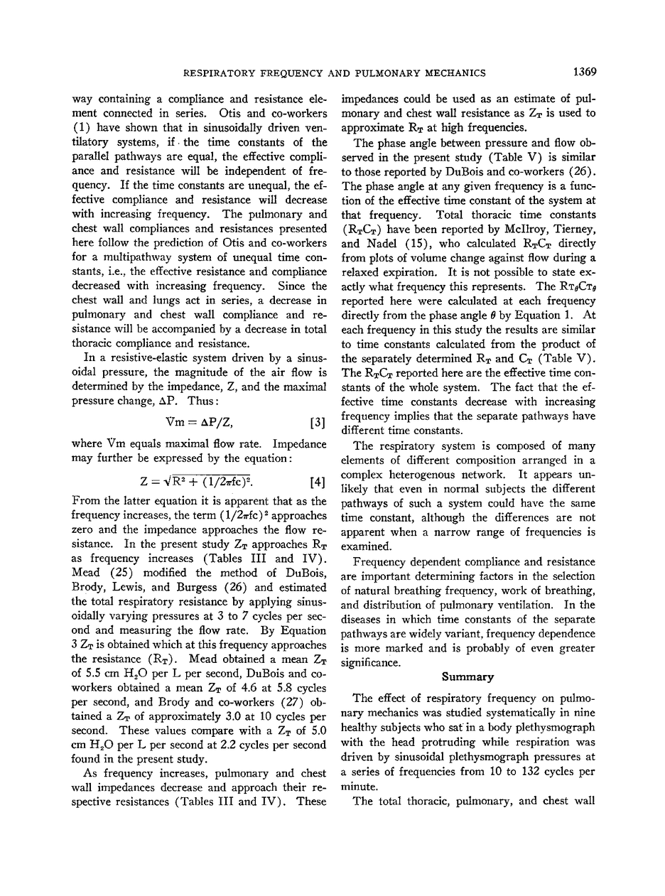 Some Effects of Respiratory Frequency on Pulmonary Mechanics