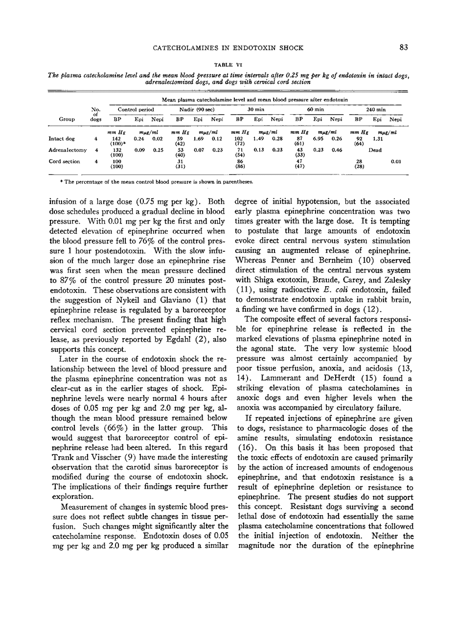 Correlation of plasma catecholamine levels with hemodynamic changes in canine endotoxin shock.