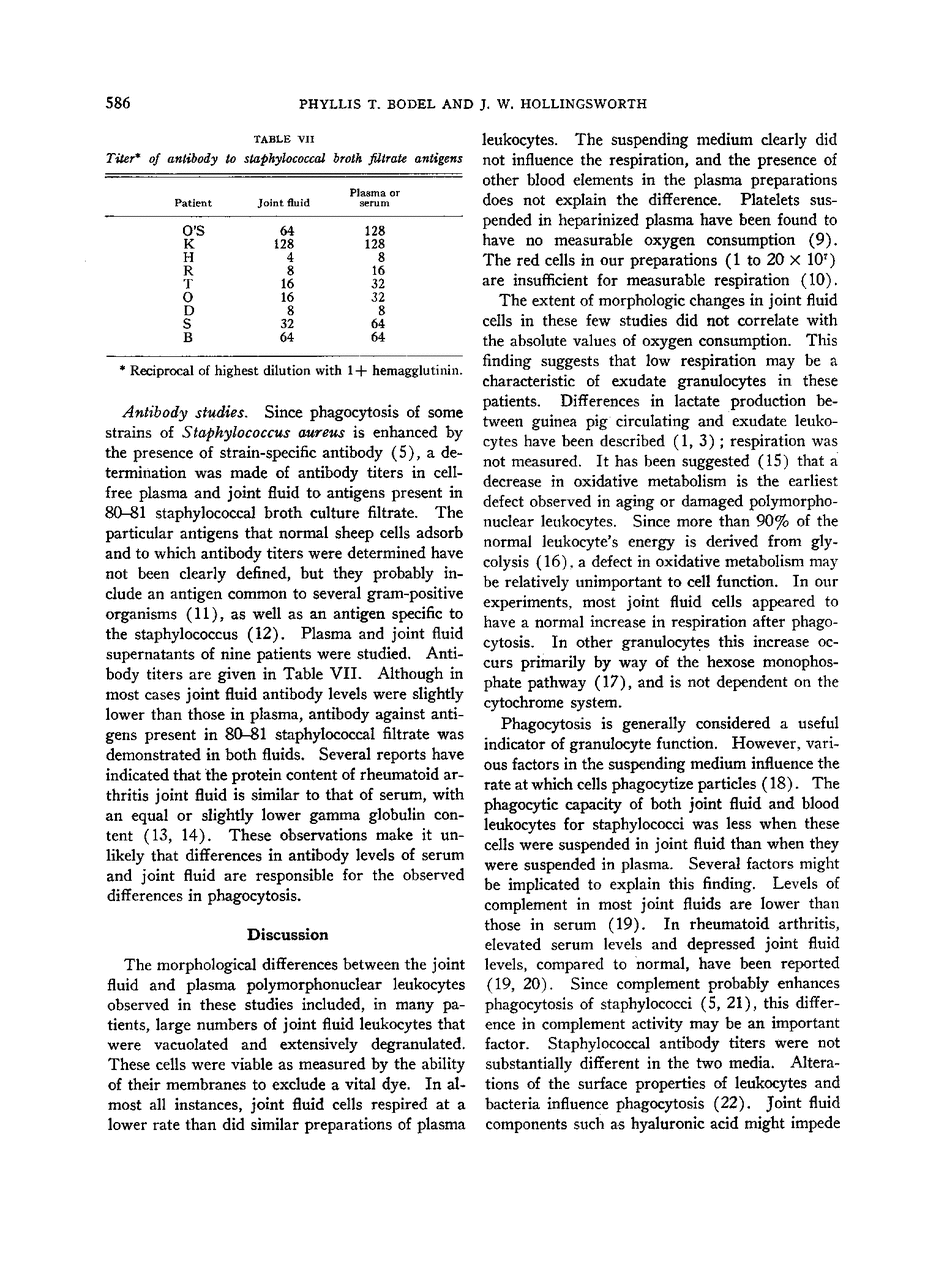 Comparative morphology, respiration, and phagocytic function of leukocytes from blood and joint fluid in rheumatoid arthritis.