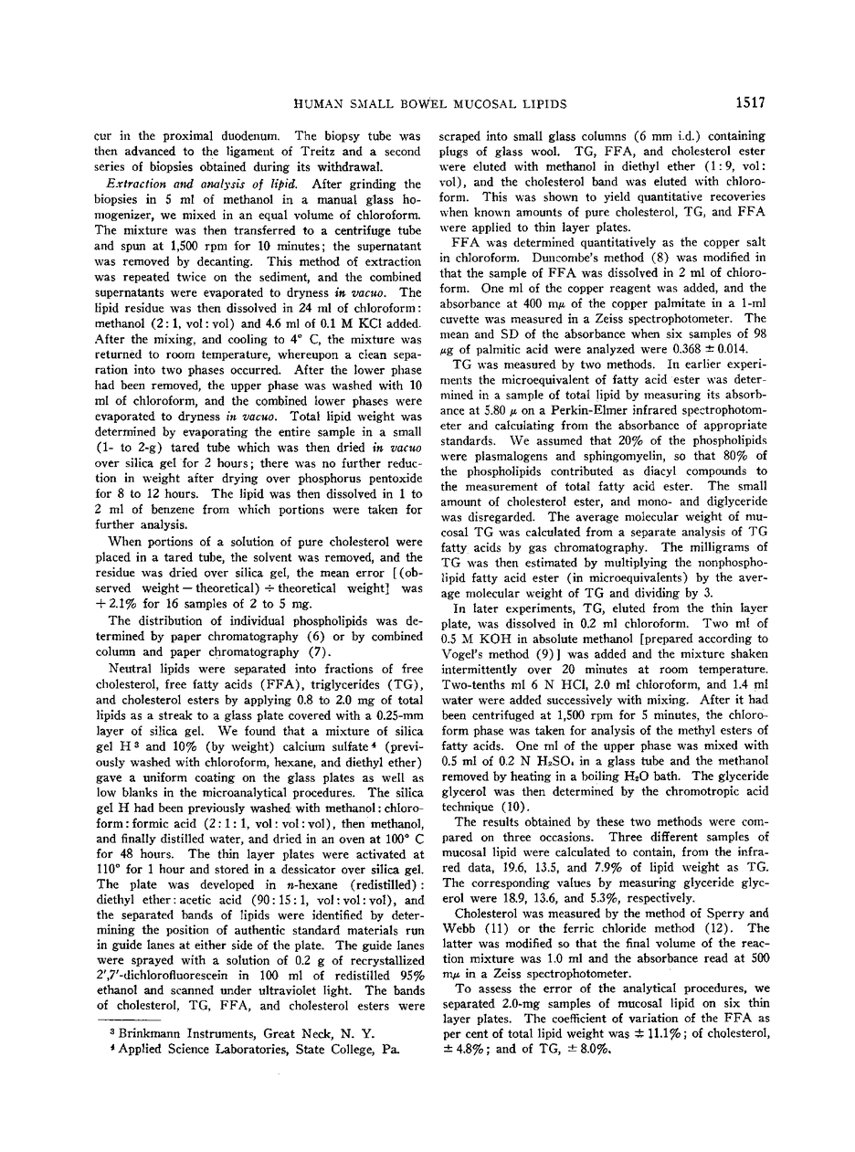 Studies on the lipid composition of human small bowel mucosa.