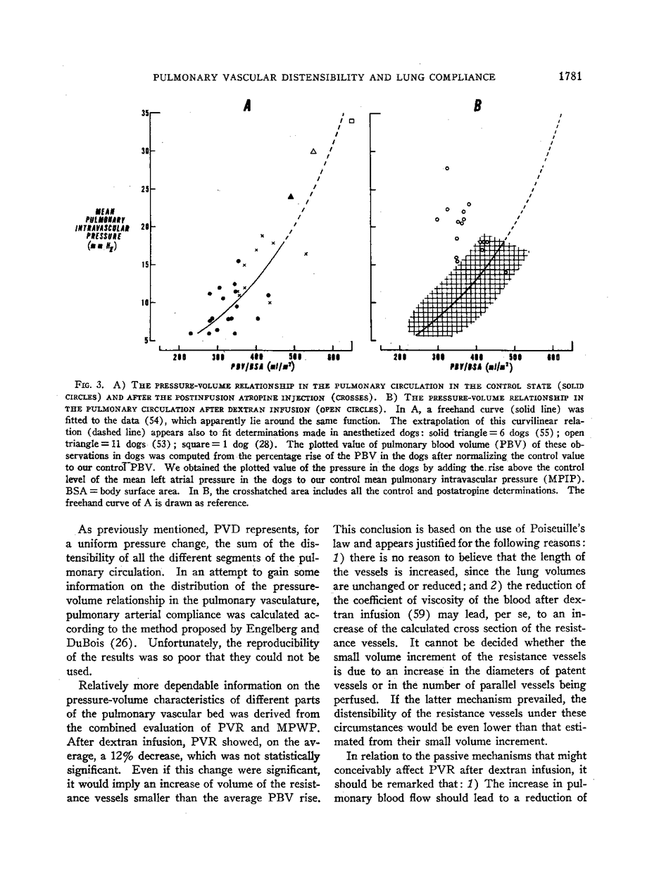 Pulmonary vascular distensibility and lung compliance as modified by dextran infusion and subsequent atropine injection in normal subjects.