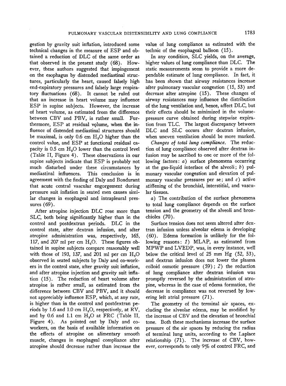 Pulmonary vascular distensibility and lung compliance as modified by dextran infusion and subsequent atropine injection in normal subjects.