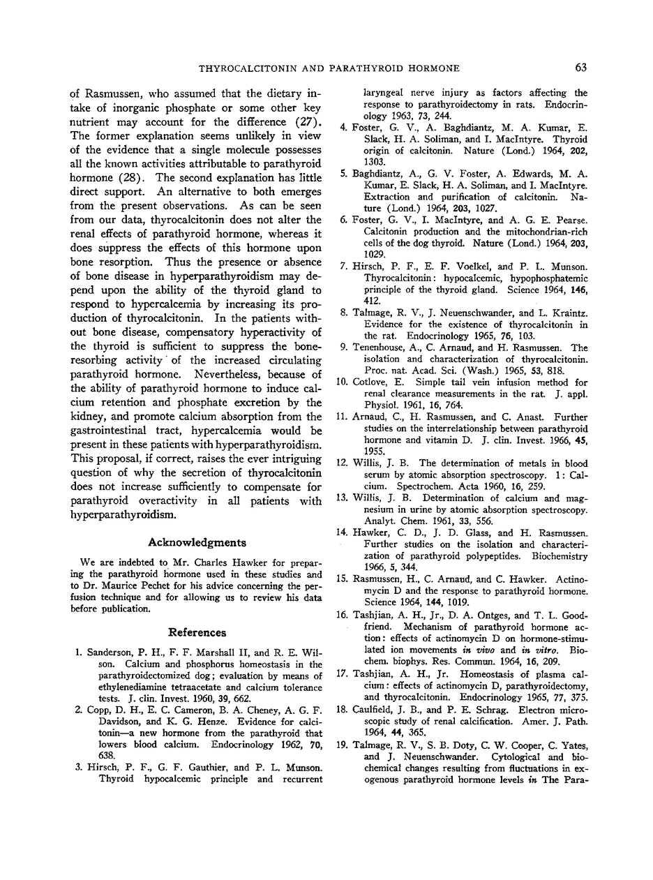 1) In the absence of the thyroid gland, the infusion of parathyroid hormone leads to a prompt rise in plasma calcium and to prompt increase in the rate of excretion of calcium in the urine.