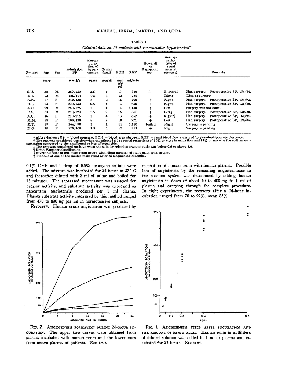 In normotensive subjects, acute reduction of mean arterial pressure to from 60 to 75 mm Hg by infusion of sodium nitroprusside caused significant increase in renin activity of renal venous plasma and also in the renal-systemic difference of renin activity. At the same time, the products of the renal-systemic difference of renin activity and renal plasma flow increased significantly, whereas renin substrate activity of plasma was unchanged, indicating that there was an increase in renin release during reduction in pressure. Renin activity of renal venous plasma, expressed in logarithms, showed a significant correlation with the degree of reduction in pressure; an increase in renin activity became significant when mean arterial pressure was reduced to below a level of 70 to 75 mm Hg.