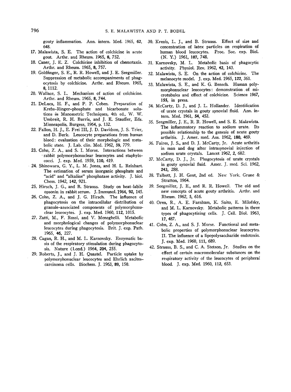 The effect of colchicine on the uptake of oxygen by human leukocytes during phagocytosis of live streptococci or of killed staphylococci was compared with the effect of colchicine on phagocytosis per se, measured in a sensitive bacterial system.