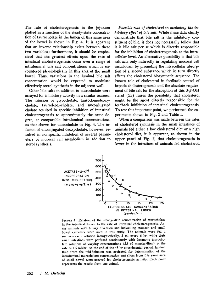 According to current concepts, the liver and gastrointestinal tract are considered to be the major, if not the sole, sources of circulating serum cholesterol. While several mechanisms have been described which control the rate of hepatic cholesterogenesis, only biliary diversion is known to alter the rate of sterol synthesis in the intestine. The present study was designed to identify the inhibitory constituent of bile and to define its anatomic and biochemical sites of action.