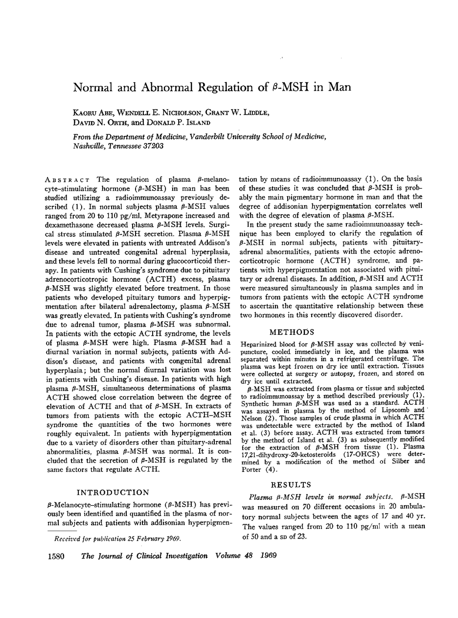Kaoru Abe, Wendell E. Nicholson, Grant W. Liddle, David N. Orth, Donald P. Island