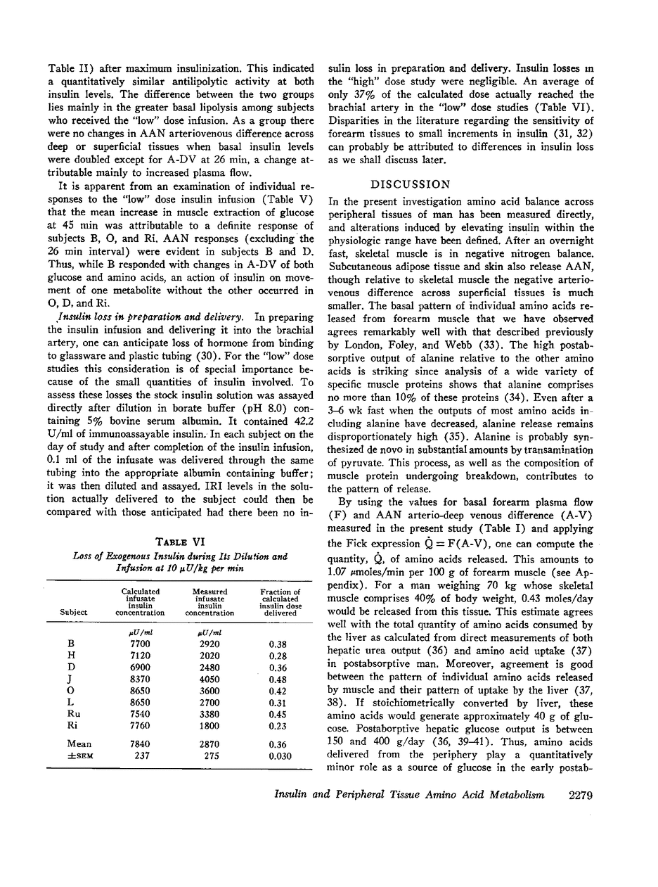 Amino acid balance across skeletal muscle and across subcutaneous adipose tissue plus skin of the forearm has been quantified in postabsorptive man before and after insulin infusion into the brachial artery.