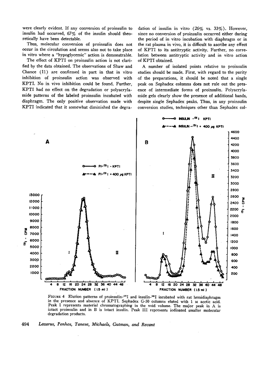 The biological activity of purified porcine proinsulin was investigated in rats. In vivo studies revealed that proinsulin produced a hypoglycemic response similar to insulin but of lesser magnitude. Hypophysectomized and adrenalectomized animals proved to be more sensitive to proinsulin than normal. In vitro studies with rat hemidiaphragm were consistent with the in vivo findings. No competition with insulin action could be demonstrated.