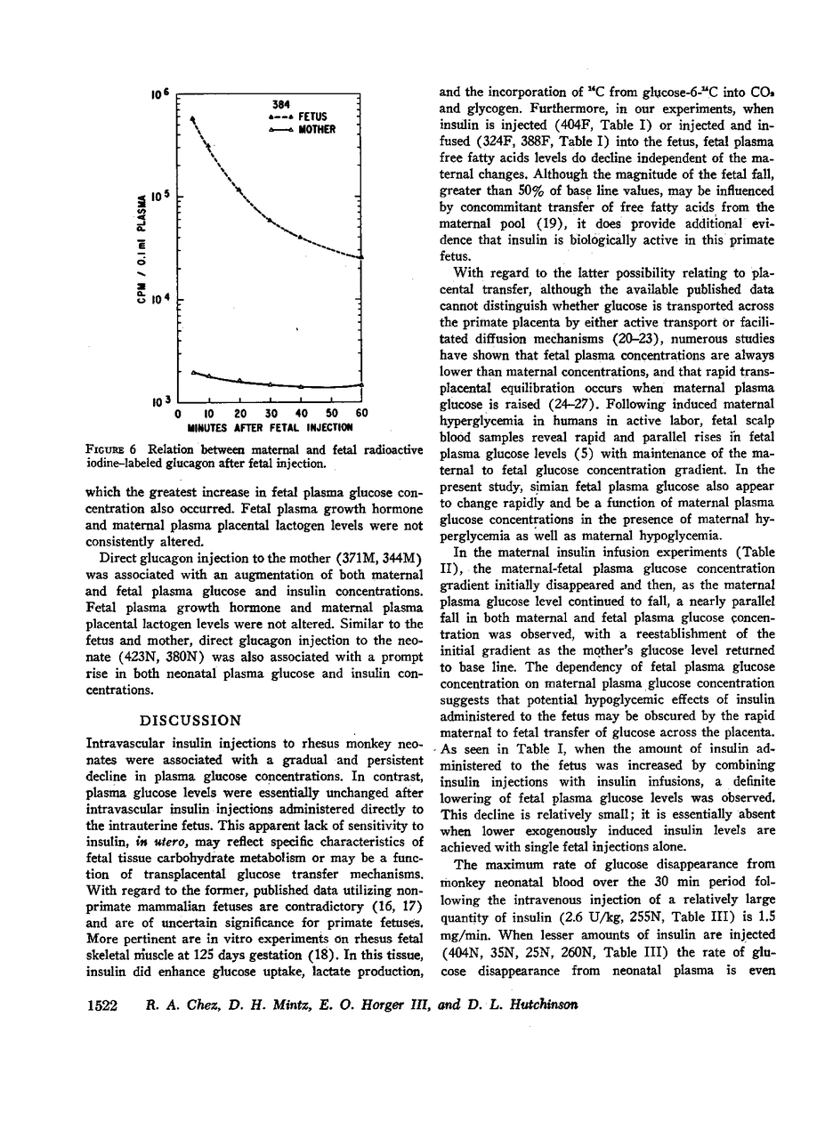 The concentrations of plasma glucose, free fatty acids, insulin, growth hormone, and placental prolactin in subhuman primate fetal and maternal plasma were examined following intravascular administration of insulin and glucagon to the fetus and mother. The neonatal plasma responses to these same stimuli were also examined.