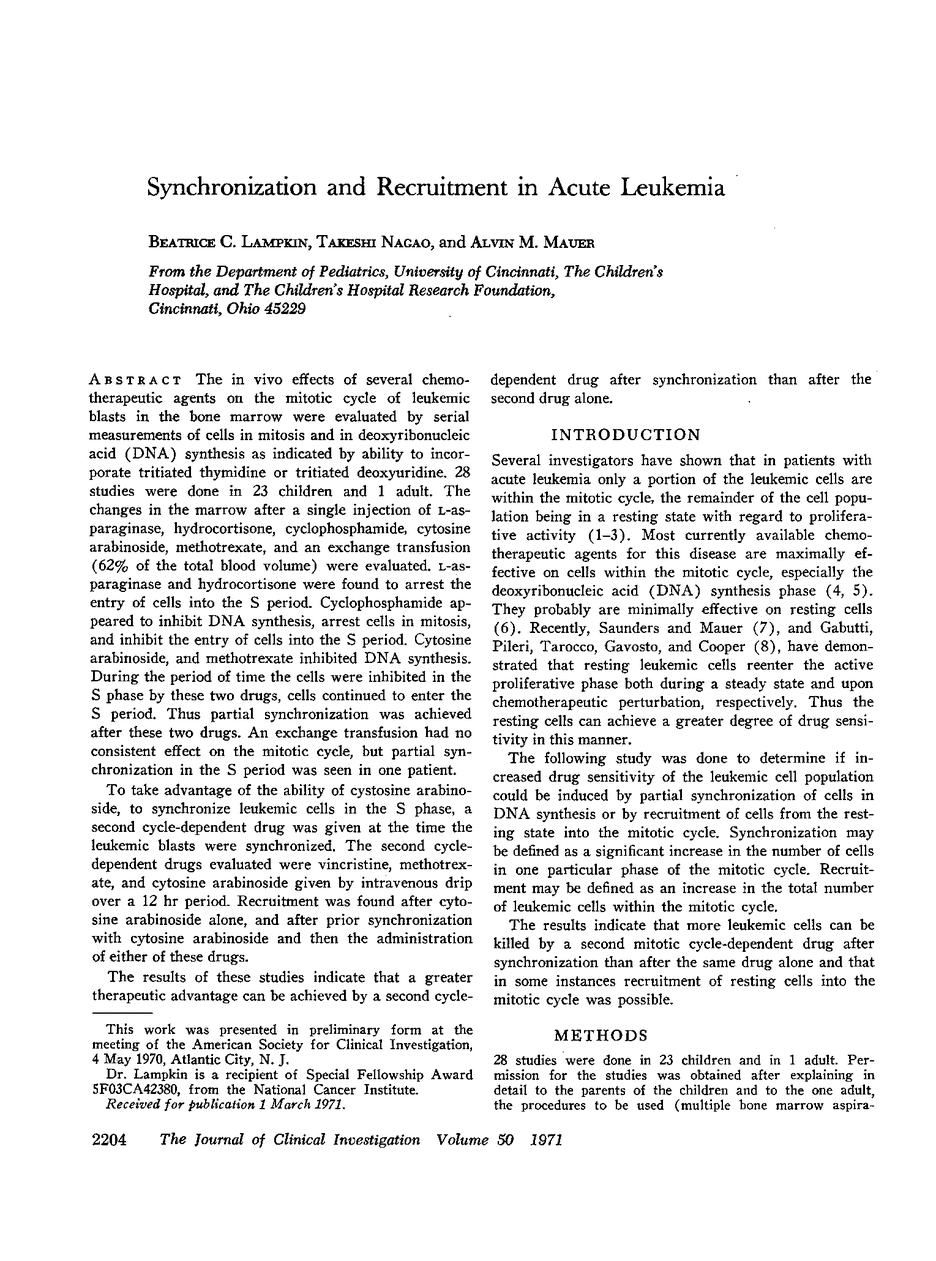 Beatrice C. Lampkin, Takeshi Nagao, Alvin M. Mauer
