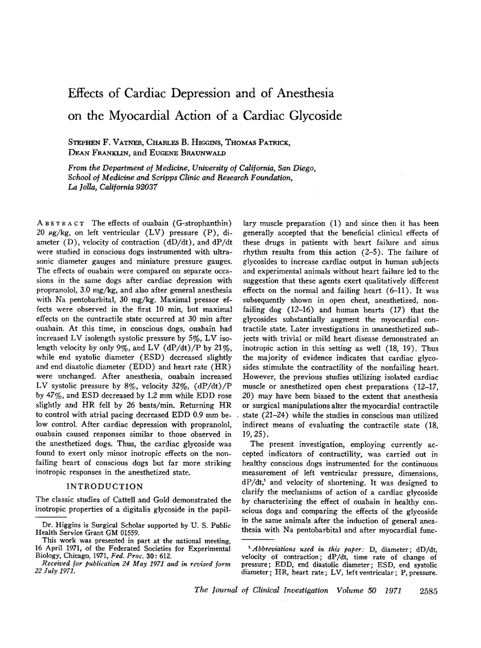 Stephen F. Vatner, Charles B. Higgins, Thomas Patrick, Dean Franklin, Eugene Braunwald