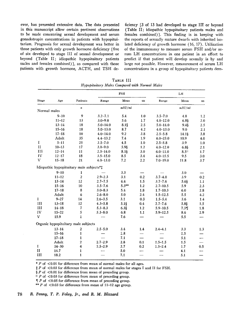 Serum follicular-stimulating hormone (FSH) and luteinizing hormone (LH) as determined by radioimmunoassay, were correlated with sexual development in 29 patients with hypopituitarism (ages 14.2-29.9 yr).