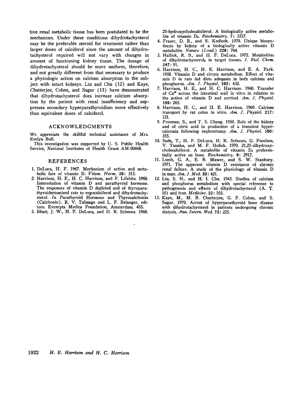 The activity of dihydrotachysterol and cholecalciferol was determined in nephrectomized or sham-operated vitamin D-depleted rats using in vitro transport of calcium and phosphate by everted intestinal preparations as the index of physiologic response. The activity of dihydrotachysterol was not reduced by absence of the kidneys whereas that of cholecalciferol was markedly inhibited so that at least a 10-fold greater dose of the latter was necessary to produce an equivalent effect in the nephrectomized rat as in the control. Dihydrotachysterol is therefore equipotent with cholecalciferol in the anephric rat although much less active in the intact animal.